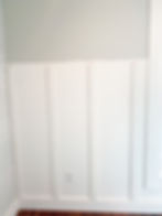 We began by painting the color Grey Owl which is the same color we already had in our kitchen and on the fireplace column. It already looks good color-blocked like this and we haven't put up the B&B!!! So feel free to try that if B&B scares you lol!! It's a huge trend right right now. You'd be one of the cool kids on the block...no pun intended.